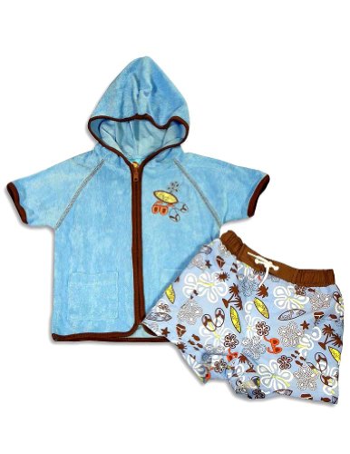 name brand baby clothes See Baby Buns - Boys Island Swimsuit And Coverup Set, Blue, Brown (Size 5) Details