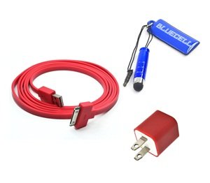 Best Reviews Of Bluecell Slim Red Color Flat 6FT Feet USB Data/Sync Cable + USB Power Adapter (Wall Charger Adaptor With Fixed Blades) For Apple IPhone 4 4S 3GS IPod Touch New IPad